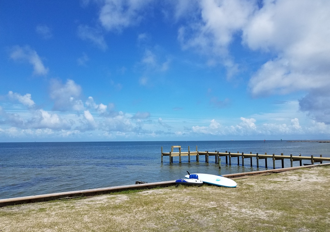 A pier with shallow water access is great for fishing and crabbing. Large deck with charcoal grill. Covered parking. Shared fish cleaning table.