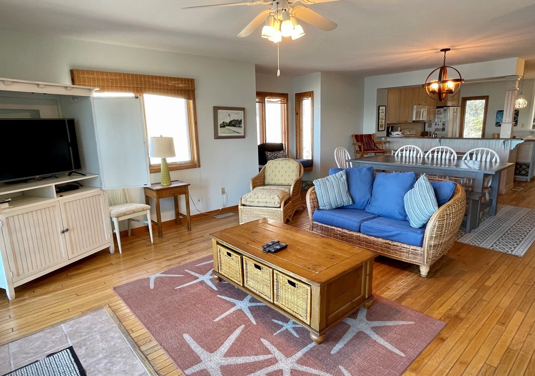 This two story townhouse offers two waterside decks with views of Pamlico Sound, Portsmouth Island, passing boats, kayakers, birdlife and amazing Ocracoke sunsets.
