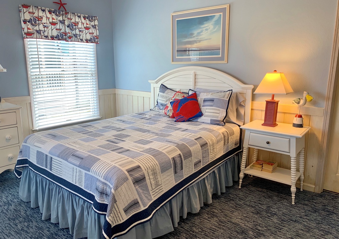 Second Floor: Two Bedrooms, each with a Queen Bed and Jack and Jill Bathroom with two half baths and a shared shower/tub