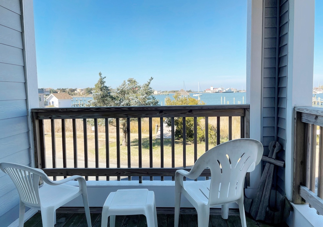 Pirate's Quay is the perfect harbor front getaway for a family vacation or couples getaway. Relax on the covered deck and enjoy the sea breezes while you watch kayakers, boaters and occasional ferries arrive and depart Ocracoke Island. Pirate's Quay offers a front row seat to nightly displays of color as the sun sets slowly over Pamlico Sound. Pirate's Quay is a true vacation away.