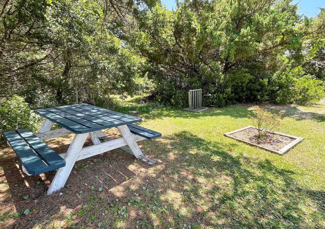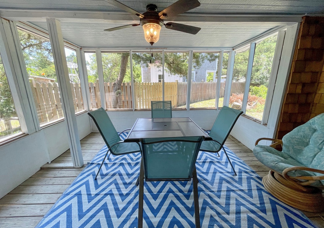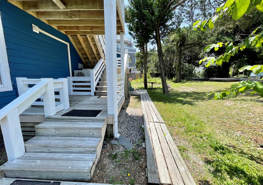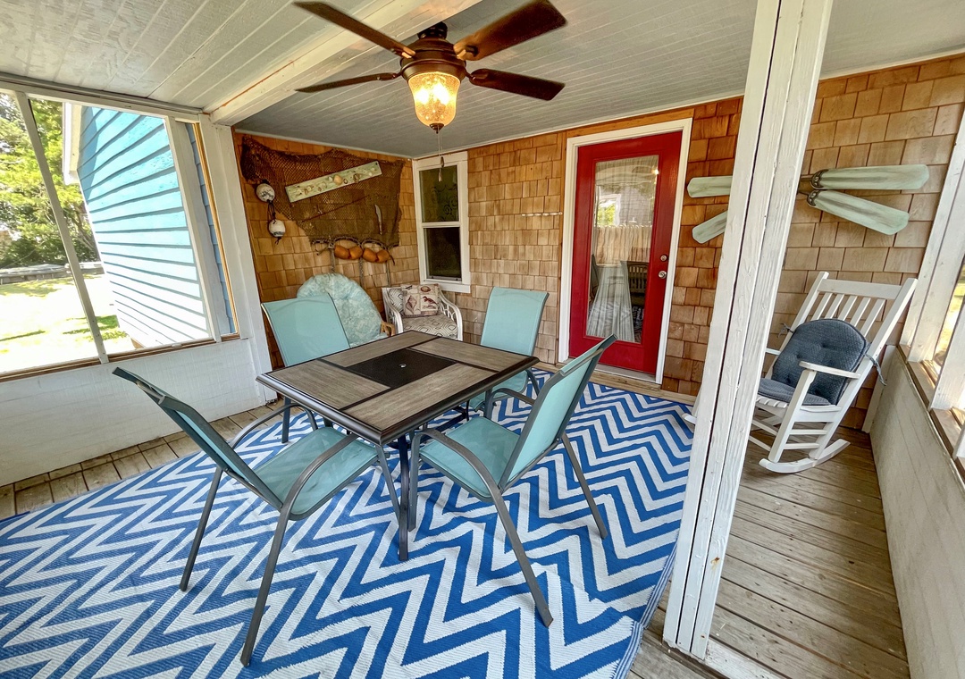 The exterior offers a screened porch with swing. Corinne's Downstairs shares a picnic table, charcoal grill and Washer/Dryer with upstairs unit, WP25. Laundry room is attached to building.