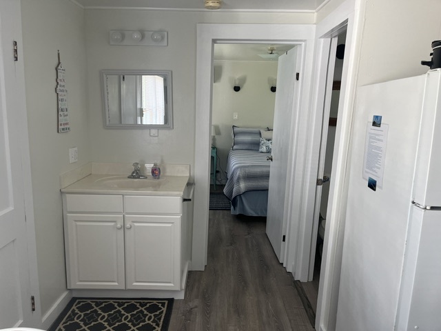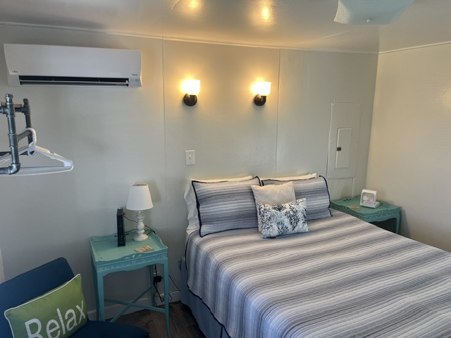 Cozy and full of charm, this cottage features a queen bedroom, a bright galley-style kitchen, and inviting coastal touches throughout. Just outside, a large grassy lot and covered porch offer a peaceful place to relax and soak up the views.