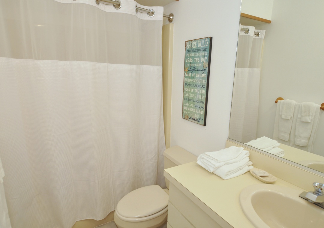 3 Bedrooms, 2 Baths: This beautiful three bedroom condo offers a 1 bedroom suite with a King sized bed, private bath and small loft overlooking the first floor. The first floor offers 1 bedroom with a Queen sized bed and 1 bedroom with a Trundle bed - this pulls out to be 2 twins. 2 Full Baths.