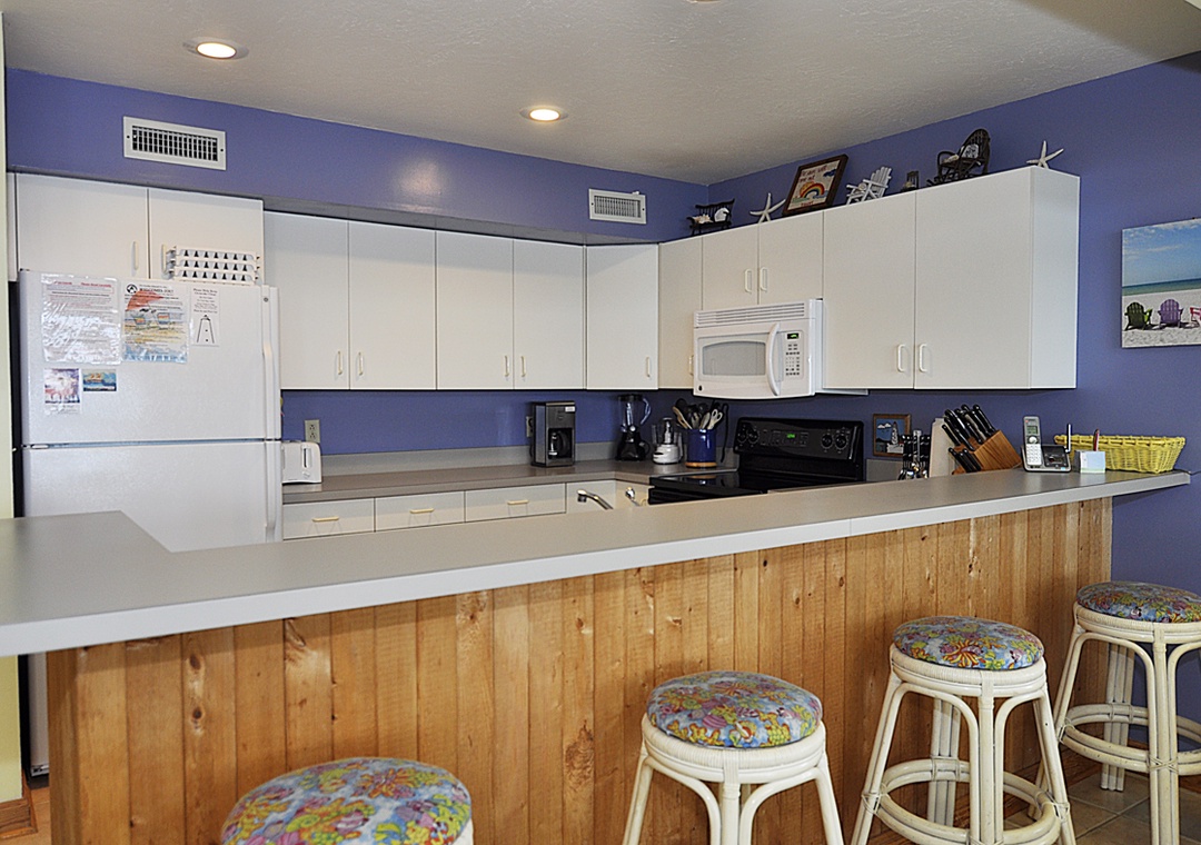 Our condo unit is very well equipped & maintained. Realty company cleaners do a great job of cleaning. Very nice improvements to building with new siding, stairs, & railings. One suggestion we would like to make is to have a working water spigot & hose next to building. We used one a couple of times to hose off our kayaks, but this time it wasn’t working. Luckily we made friends with a couple in a ground unit & they offered for us to use their hose. But location to launch our kayaks & see beautiful sunsets can’t be beat!- Reviewed On: 5/15/2023