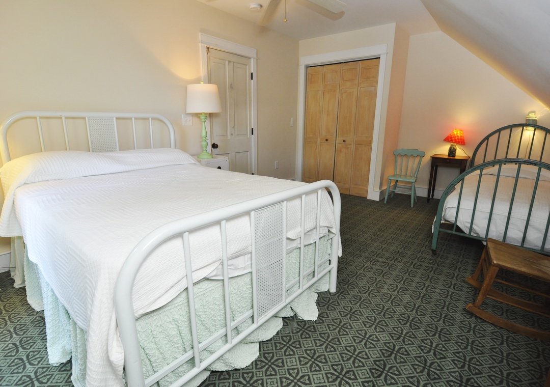 Second Floor: Bedroom with Queen bed. Bedroom with Double bed and Twin bed. Bath with tub/shower.
