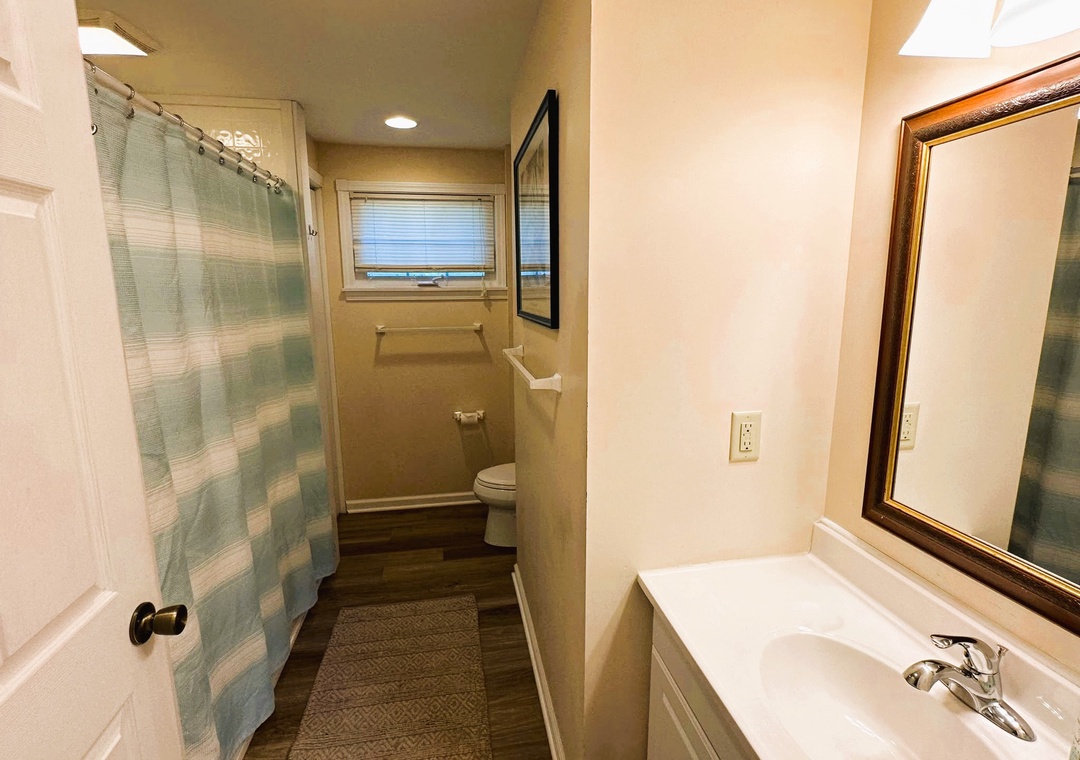 3 Bedrooms, 2 Baths: First floor offers 1 bedroom with a Queen and a Twin, 1 bedroom with a Queen. Second floor bedroom with Queen Bed and a Double Futon. There is one bathroom on each floor.