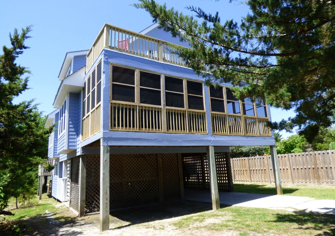 Pet friendly 3 bedroom Outer Banks vacation home on Ocracoke Island. Great views from the rooftop deck. Relax on the screened porch or sun deck.