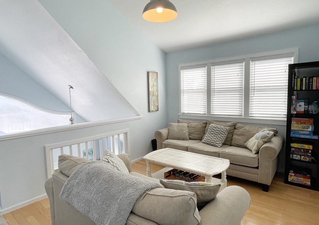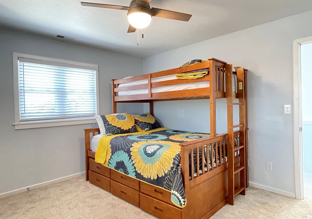Second Floor: Bedroom with Queen bed. Bedroom with Pyramid with Trundle (Queen on bottom and Extra Long Twin on top and Twin Trundle) with TV. Bedrooms share a Bath with tub/shower. Loft with Queen Sleeper Sofa.