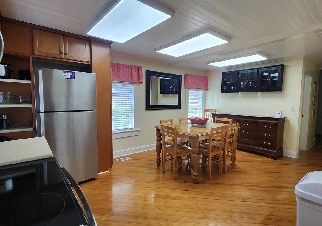 The good: Great location on a quiet street; charming and comfortable house with fantastic living room, new appliances and great porches. The less than ideal: kitchen is not equipped for six people, including no pantry, odd selection of cooking implements including pots and pans, and too few bowls. Downstairs bedroom is really small. Still a great stay!- Reviewed On: 1/6/2025