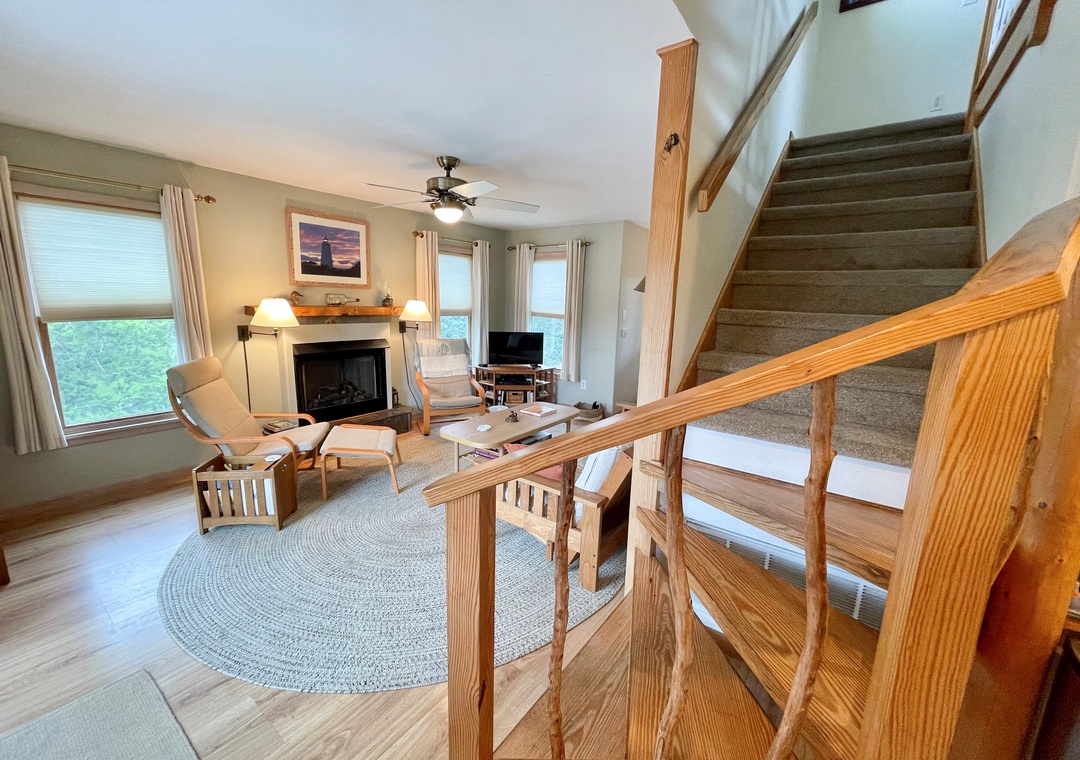 Enjoy an open floor plan. The first floor features a master bedroom with private deck and master bathroom. A half bath is also located on the first floor which includes the washer/dryer. The second floor features two bedrooms and a full hallway bathroom.