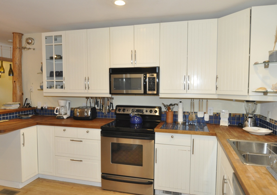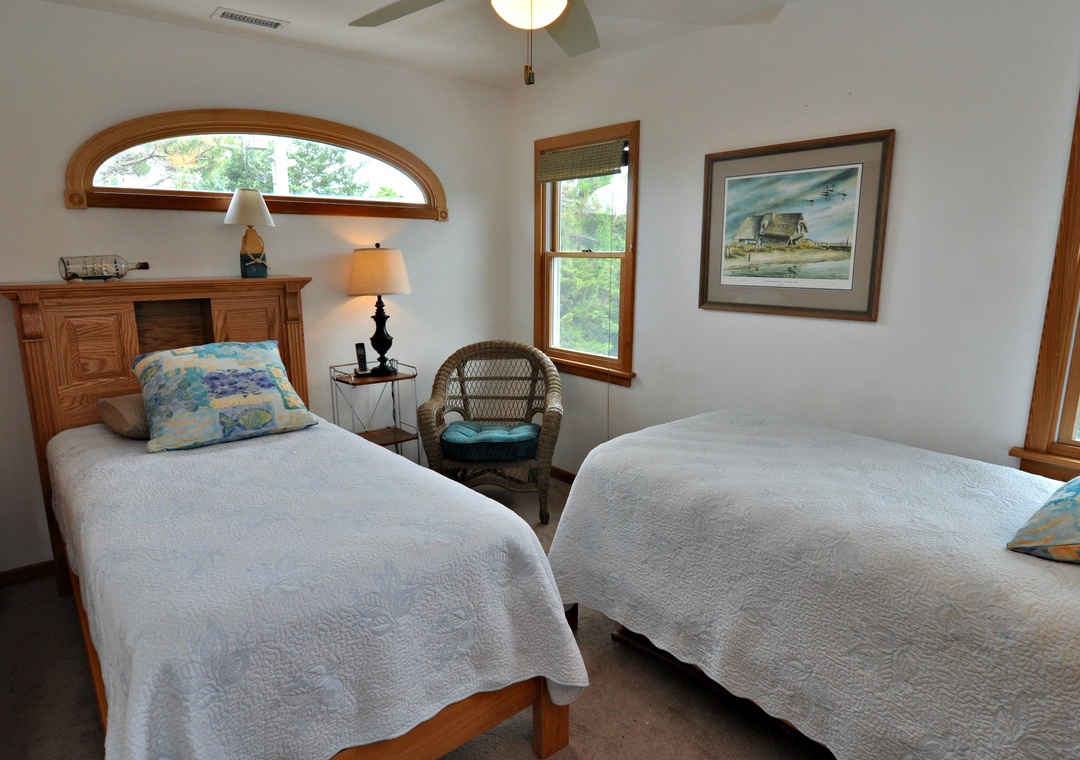 4 Bedrooms, 3.5 Baths: Follow The Heron offers a first floor Primary Bedroom with Queen. Second floor offers one bedroom with Queen and one bedroom with two Twins. The fourth bedroom is located in the detached In-Law suite and has a Double Futon, full bath with shower (no tub) and TV with DVD player (no cable or streaming).
