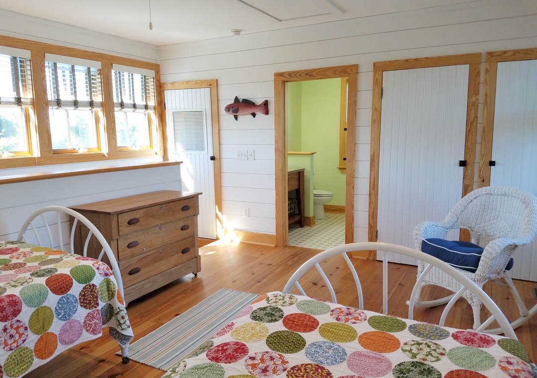 Second Floor: Bedroom with two Twin Beds. Bath with shower. First floor privacy door to second floor.