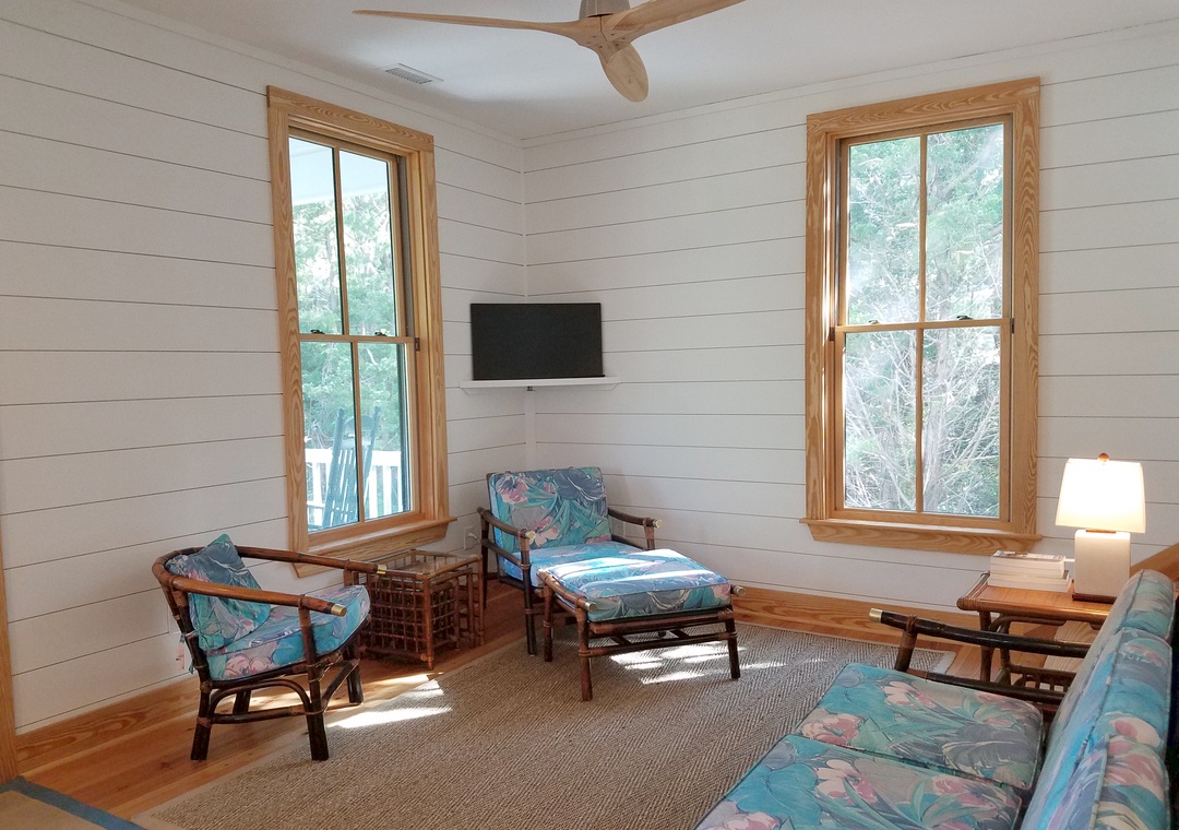 We stayed at the rental home “Nunc Pro Tunc”. It is a beautiful home with plenty of room for the two of us and well equipped. The screened sun room off the kitchen is very nice too. For privacy , especially at night, shutters, blinds or shades over the front door and windows in the kitchen & living room area would be great. We did enjoy our stay on Ocracoke Island as usual. It’s a special place!!- Reviewed On: 10/24/2023