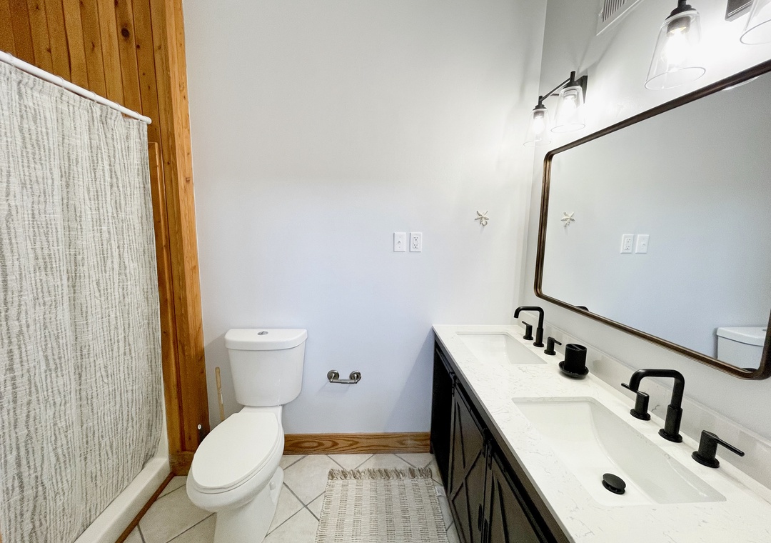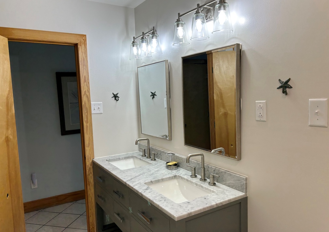 2 Bedrooms, 2 Baths each with double vanities: Each bedroom offers a King bed. The living area includes an ottoman sleeper sofa. Newly renovated tiled showers in both bathrooms. Sleeper sofa.