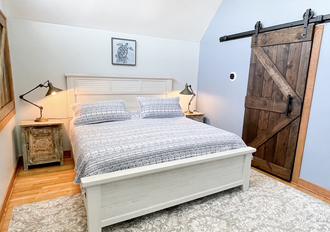 Second Floor: Primary Bedroom with King bed and Primary Bath with shower.